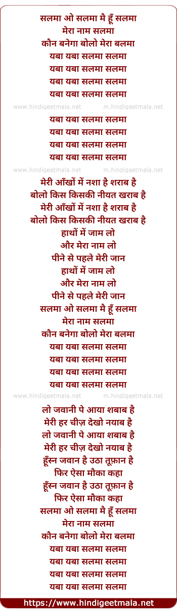 Lyrics of Mera Naam Hai Salma Kaun Banega Mera Balma - मेरा नाम है सलमा कौन बनेगा मेरा बलमा