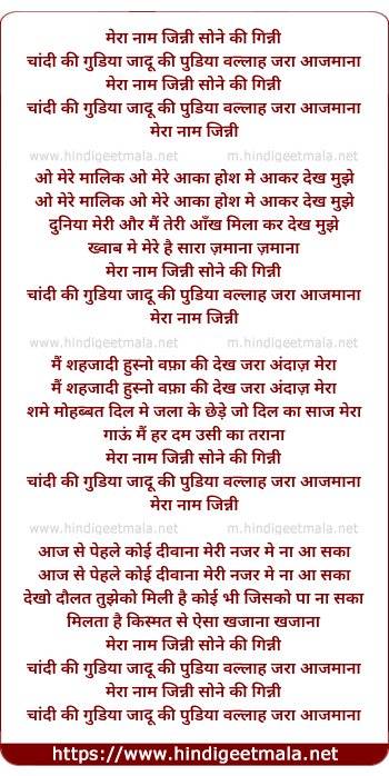Lyrics of Mera Naam Jinny - मेरा नाम जिन्नी