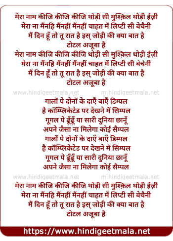 mera naam kizi kizi kizi thodi si mushkil thodi easy