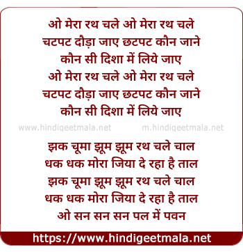 Lyrics of Mera Rath Chale Chatpat Dauda Jaaye - मेरा रथ चले चटपट दौड़ा जाए