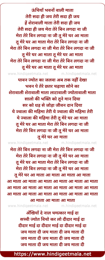 Lyrics of Mera Tere Bin Lagda Naa Jee - मेरा तेरे बिन लगदा ना जी
