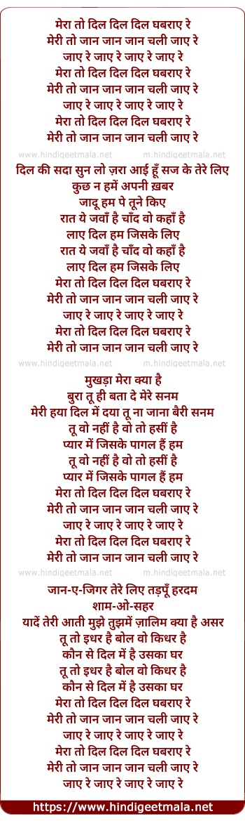 Lyrics of Mera Toh Dil Dil Dil Ghabraye Re - मेरा तो दिल दिल दिल घबराए रे