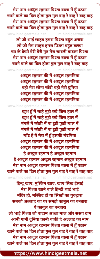 Lyrics of Meraa Nam Abdul Rehman - मेरा नाम अब्दुल रहमान