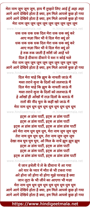 Lyrics of Mera Nam Jum Jum Jum Haye - मेरा नाम जूम जूम जूम हाय