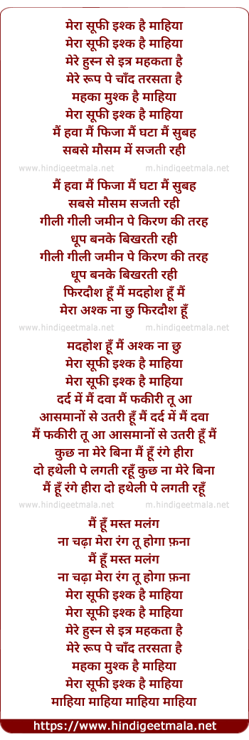 Lyrics of Meraa Sufi Ishq - मेरा सूफी इश्क