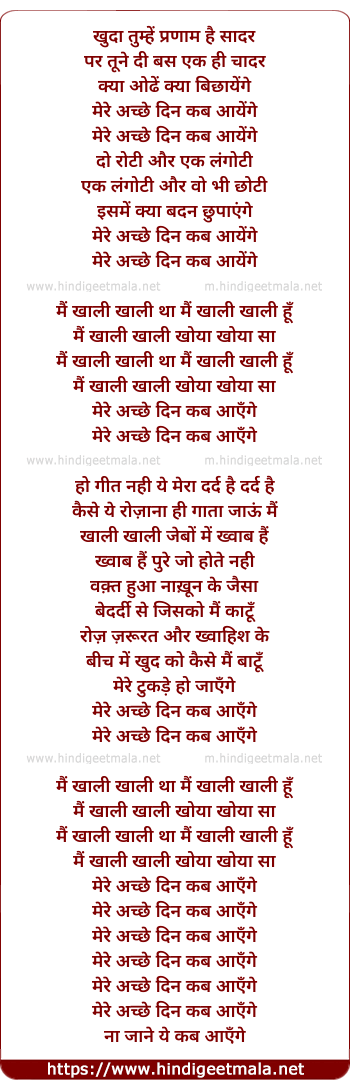 Lyrics of Mere Achche Din Kab Aayenge - मेरे अच्छे दिन कब आयेंगे