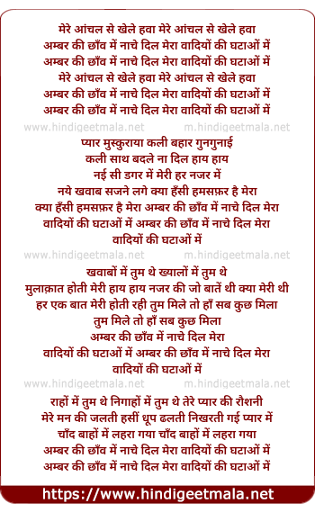 Lyrics of Mere Anchal Se Khele Hawa Ambar Ki Chao Me - मेरे आंचल से खेले हवा अम्बर की छाओ में