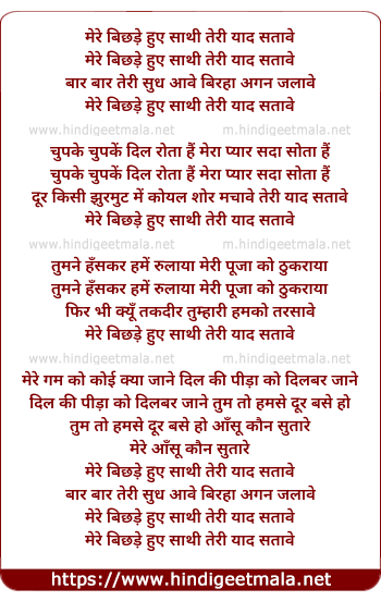Lyrics of Mere Bichde Hue Sathi Teri Yaad Satave - मेरे बिछड़े हुए साथी तेरी याद सतावे