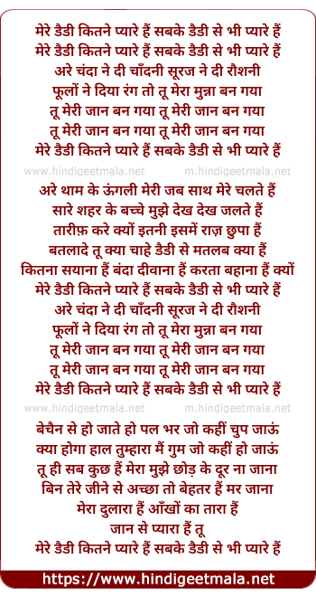 Lyrics of Mere Daddy Kitne Pyare Hai - मेरे डैडी कितने प्यारे हैं