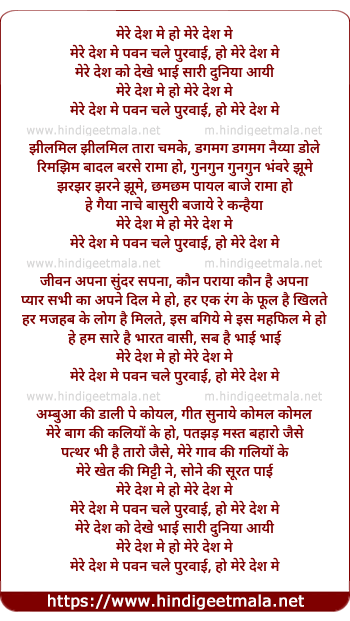 Lyrics of Mere Desh Me Pavan Chale Purvai - मेरे देश मे पवन चले पुरवाई