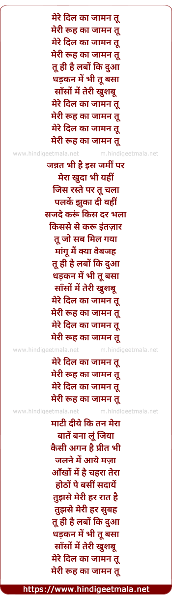 Lyrics of Mere Dil Ka Zaaman Tu - मेरे दिल का जामन तू