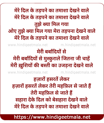Lyrics of Mere Dil Ke Tadapne Ka Tamasha Dekhne Wale - मेरे दिल के तड़पने का तमाशा देखने वाले