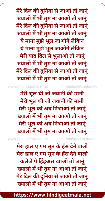 Lyrics of Mere Dil Ki Duniya Se - मेरे दिल की दुनिया से जाओ तो जानूं