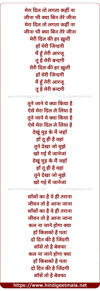 Lyrics of Mere Dil Ki Har Khushi - मेरा दिल तो लगता कहीं ना
