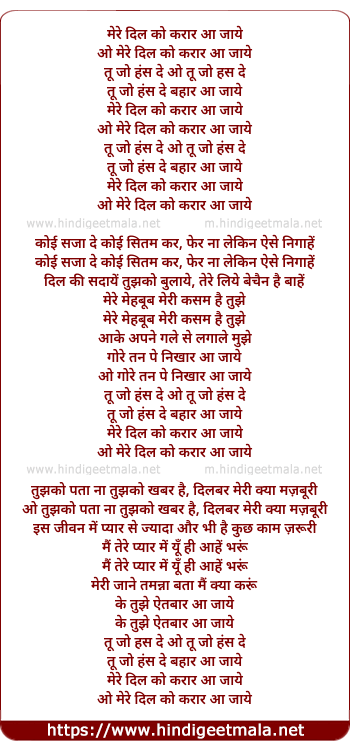 Lyrics of Mere Dil Ko Karar Aa Jaaye - मेरे दिल को करार आ जाये
