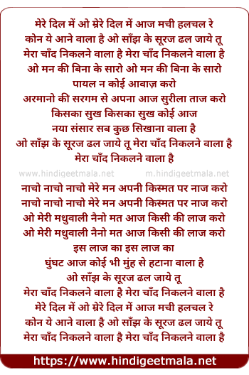 Lyrics of Mere Dil Me Aaj Machi Hulchul Re - मेरे दिल में आज मची हलचल रे