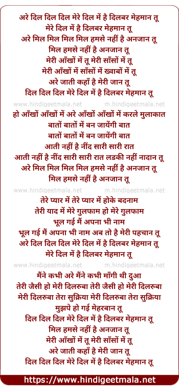 Comments on song "Yahoo, Are Dil Dil Dil, Mere Dil Mein Hain Dilbar Mehman Tu"
