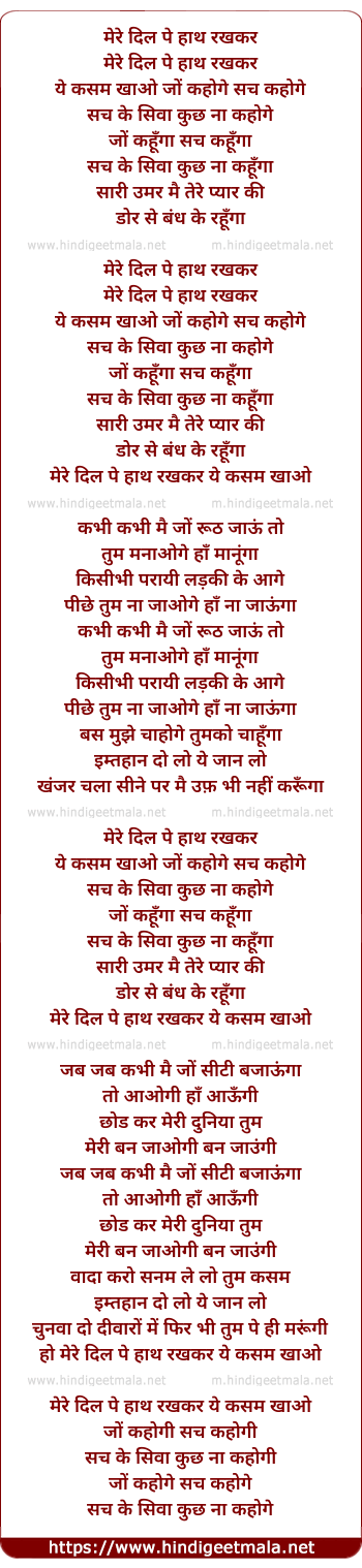 Lyrics of Mere Dil Pe Haath Rakhkar - मेरे दिल पे हाथ रखकर
