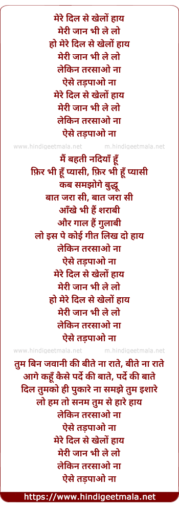 Lyrics of Mere Dil Se Khelo - मेरे दिल से खेलो