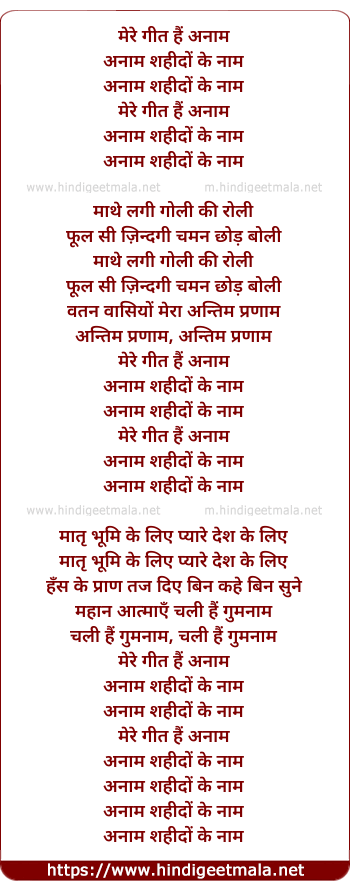Lyrics of Mere Geet Hai Anaam - मेरे गीत हैं अनाम