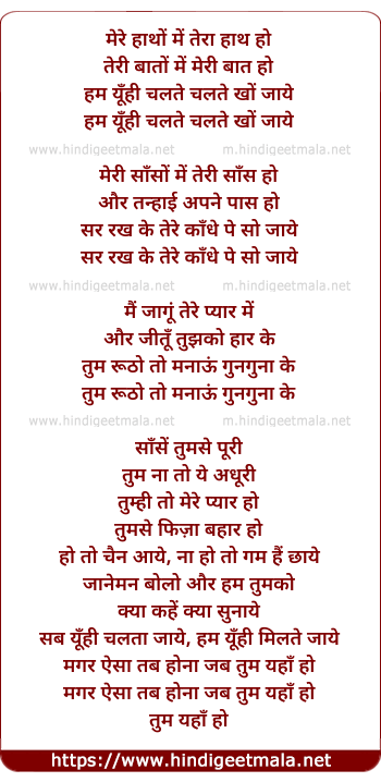 Lyrics of Mere Hatho Me Tera Hath Ho - मेरे हाथों में तेरा हाथ हो