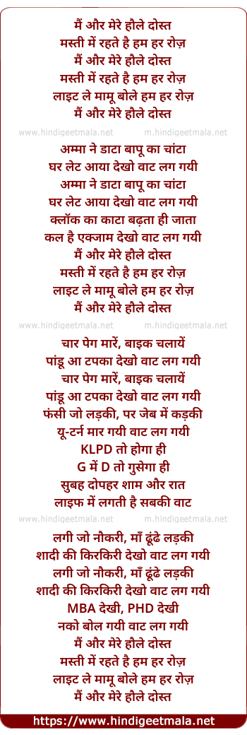 Lyrics of Mere Haule Dost - मेरे हौले दोस्त