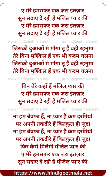 Lyrics of Mere Humsafar - मेरे हमसफर