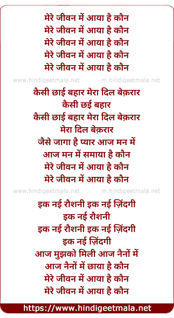 Lyrics of Mere Jeevan Me Aaya Hai Kaun - मेरे जीवन में आया है कौन