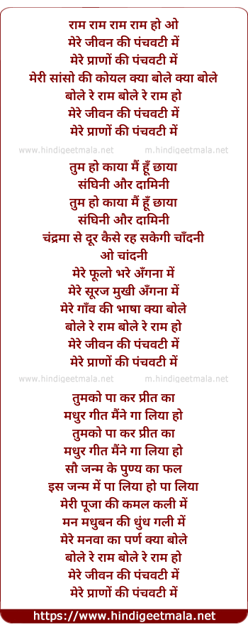 Lyrics of Mere Jivan Ki Parnkuti Me - मेरे जीवन की पंचवटी में