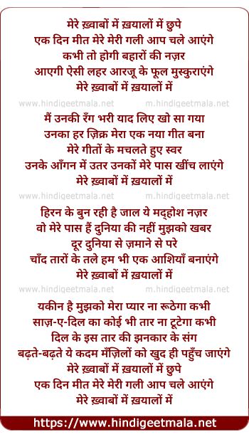 Lyrics of Mere Kvaabon Men Kayaalon Men Chhupe - मेरे ख़्वाबों में ख़यालों में छुपे