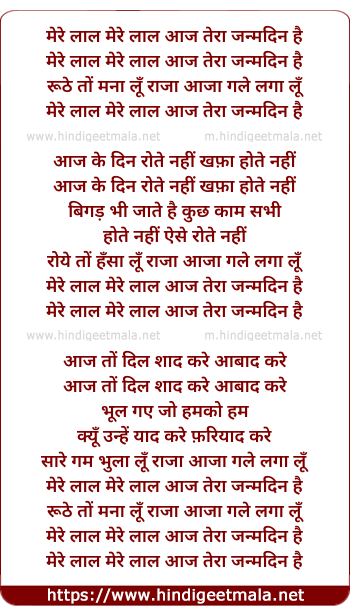 Lyrics of Mere Lal Aaj Tera Janamdin Hai - मेरे लाल आज तेरा जन्मदिन है