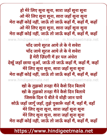 Lyrics of Mere Liye Soona Soona Sara Jahan - मेरे लिए सूना सूना सारा जहाँ