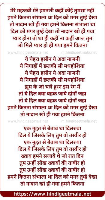 Lyrics of Mere Mahzubi Mere Humnashi - मेरे महजबी मेरे हमनशी