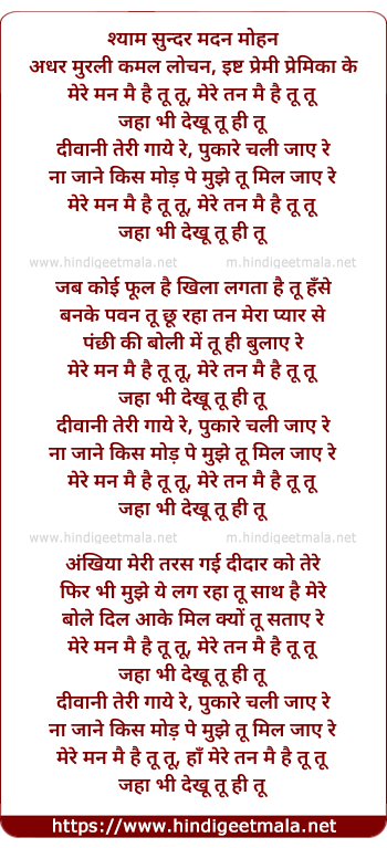 mere man me hai tu tu, mere tan me hai tu tu