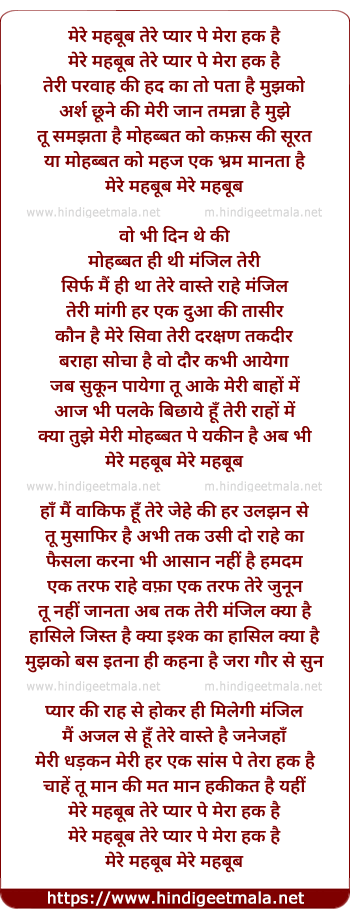 Lyrics of Mere Mehboob - Recitation - मेरे महबूब