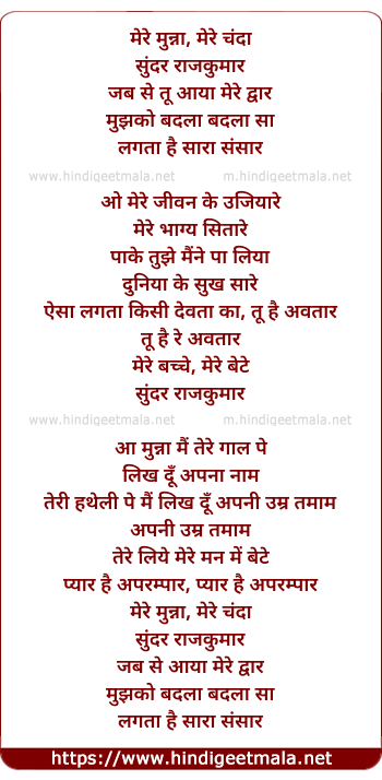 Lyrics of Mere Munna Mere Chanda (Asha) - मेरे मुन्ना मेरे चंदा