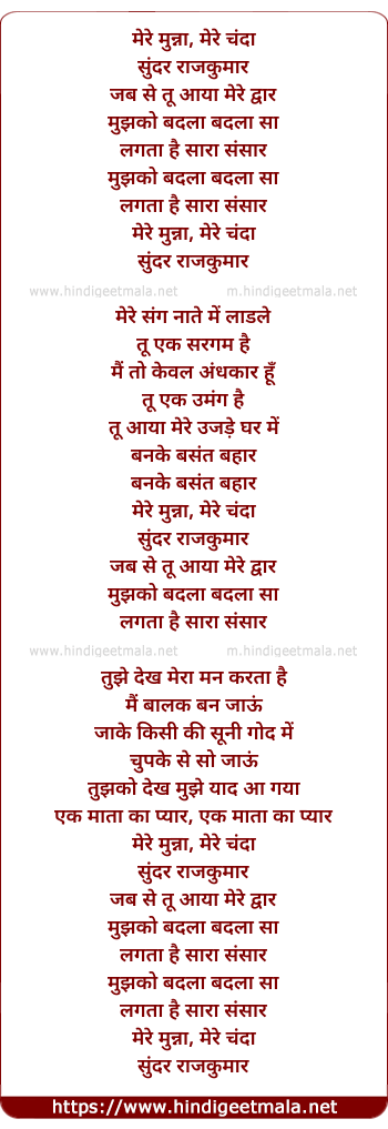 Lyrics of Mere Munna Mere Chanda (Kishore) - मेरे मुन्ना मेरे चंदा