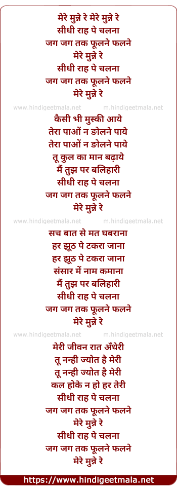Lyrics of Mere Munne Re Seedhi Raah Pe - मेरे मुन्ने रे सीधी राह पे