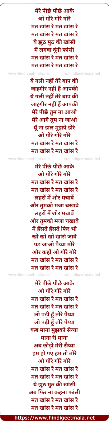 Lyrics of Mere Peeche Peeche Aake - मेरे पीछे पीछे आके