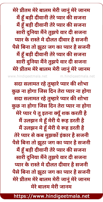 Lyrics of Mere Preetam Mere Balam - मेरे प्रीतम मेरे बालम