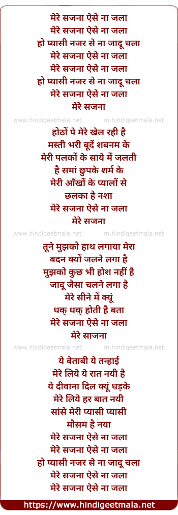 Lyrics of Mere Sajna (Sharon Prabhakar) - मेरे सजना ऐसे ना जला