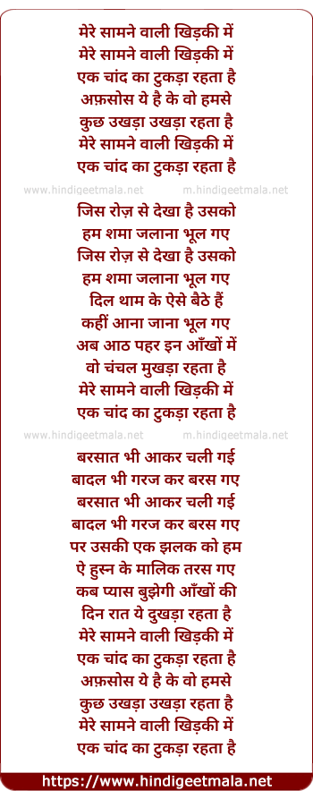 Lyrics of Mere Samne Wali Khidki Mein Ek Chand Ka - मेरे सामने वाली खिड़की में एक चांद का