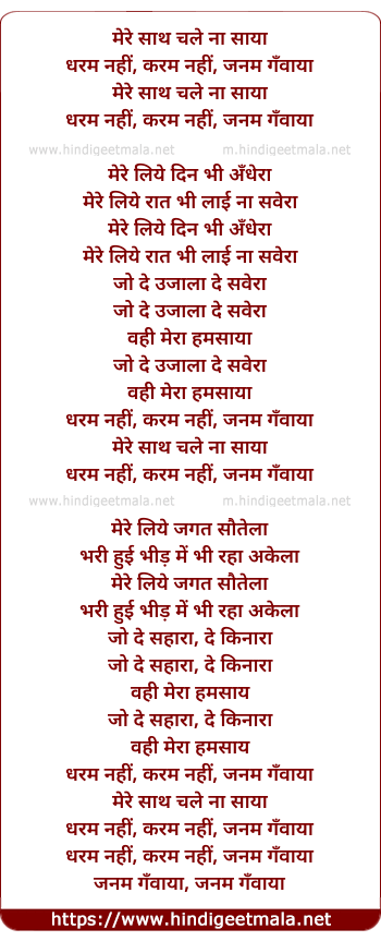 nahin karam nahin janam ganvaayaa mere saath chale naa saayaa aa dharam