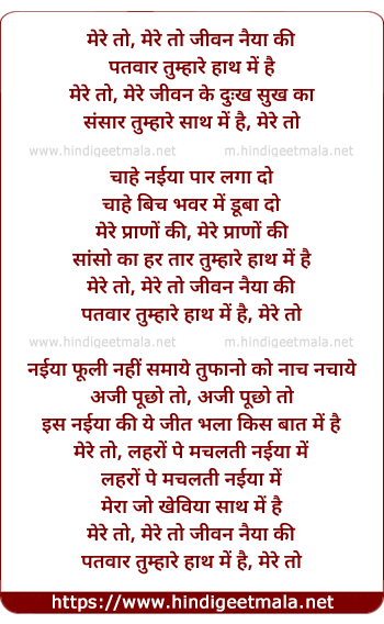 Lyrics of Mere To Jivan Naiya Ki - मेरे तो जीवन नैया की