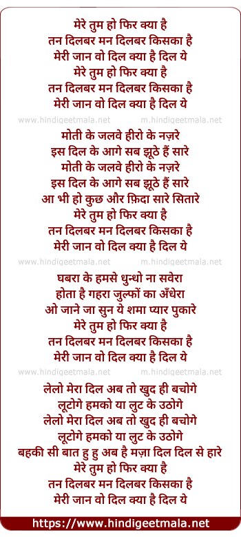 Lyrics of Mere Tum Ho Phir Kya Hai - मेरे तुम हो फिर क्या है