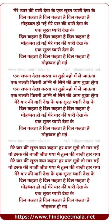Lyrics of Mere Yaar Ki Yaari Dekh Ke - मेरे यार की यारी देख के