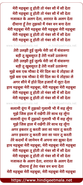 Lyrics of Meree Mehbuba Hain Sabse Hasin Sabse Juda - मेरी महबूबा है सबसे हसीं सबसे जुदा