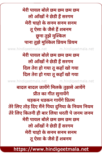 Lyrics of Meree Payal Bole Chham Chham - मेरी पायल बोले छम छम