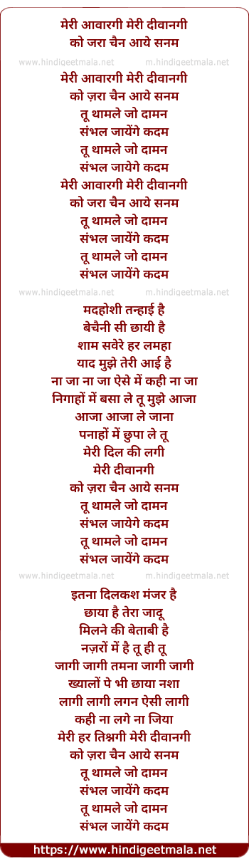 Lyrics of Meri Aawaaragi Meri Diwaanagi - मेरी आवारगी मेरी दीवानगी