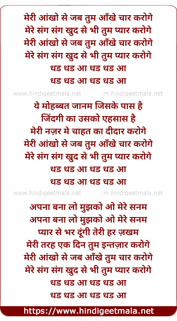 Lyrics of Meri Ankho Se Jab Aankhe Tum Char Karoge - मेरी आंखो से जब तुम आँखे चार करोगे